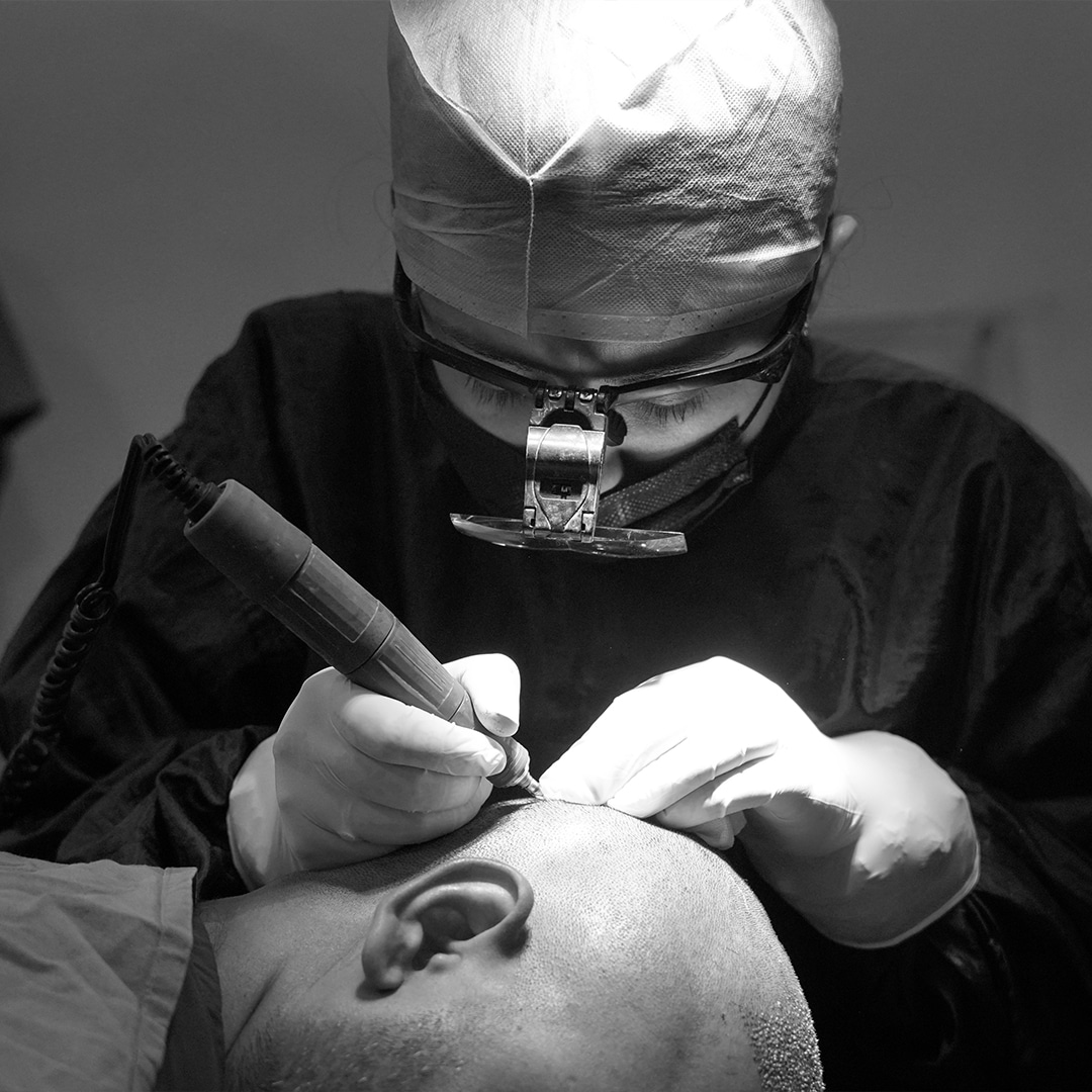 In this technique, our surgeon takes a strip of hair-bearing skin from the donor area and separates the strip into individual follicular units. These follicular units are then nourished in solution and implanted into the bald area.