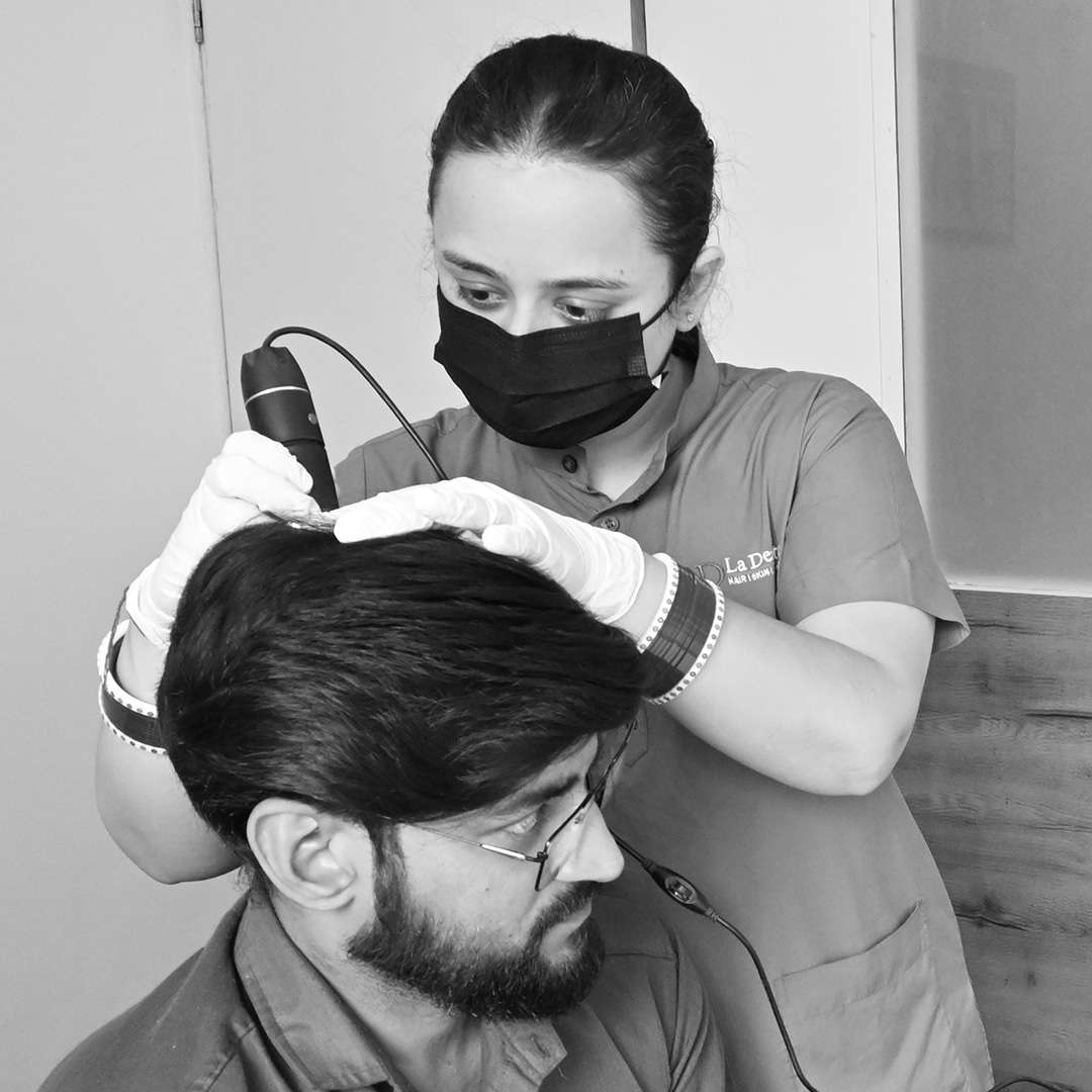 At La Densitae Hair Transplant Clinic in Pune and our other hair transplant centers in Kerala, Bangalore, Kolhapur, Thane, Panvel, Sambhaji Nagar, etc., we design hair extensions and hair wigs to solve hair loss problems induced due to different medical situations like alopecia, chemotherapy, and radiation.